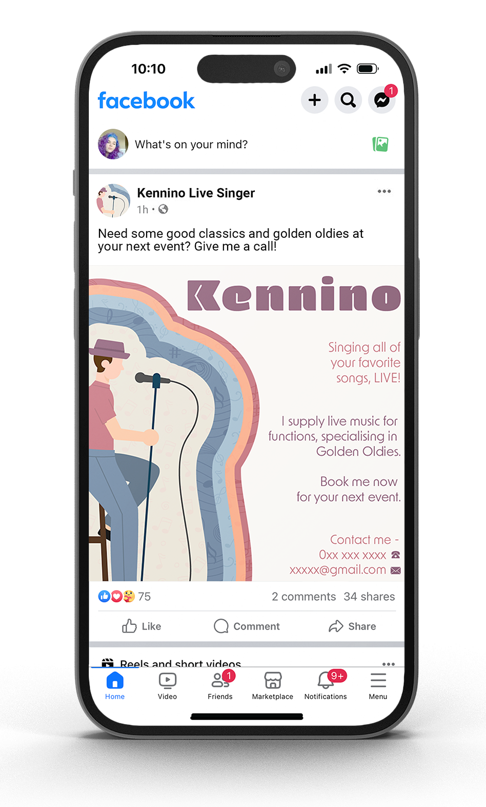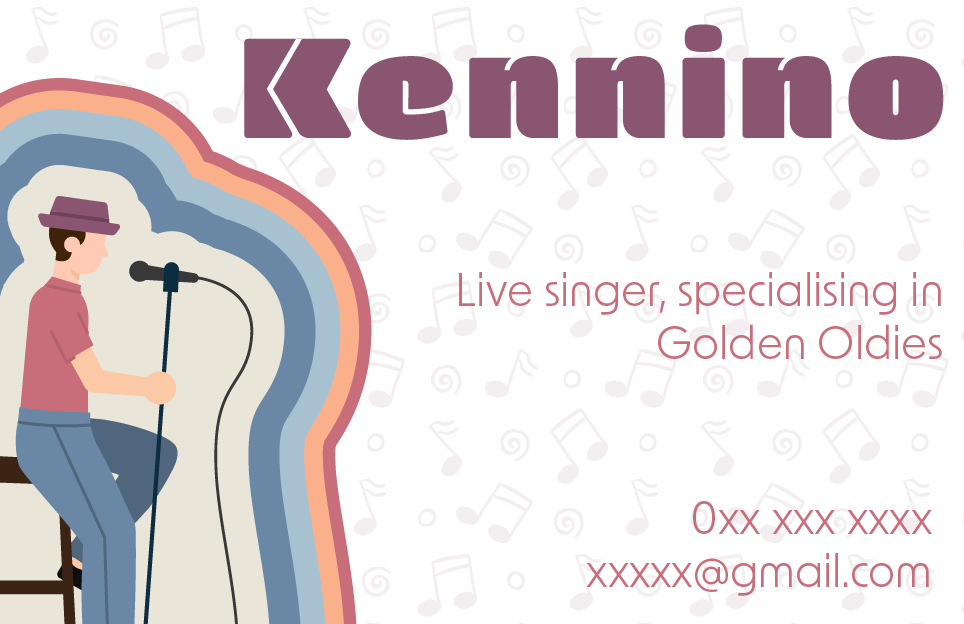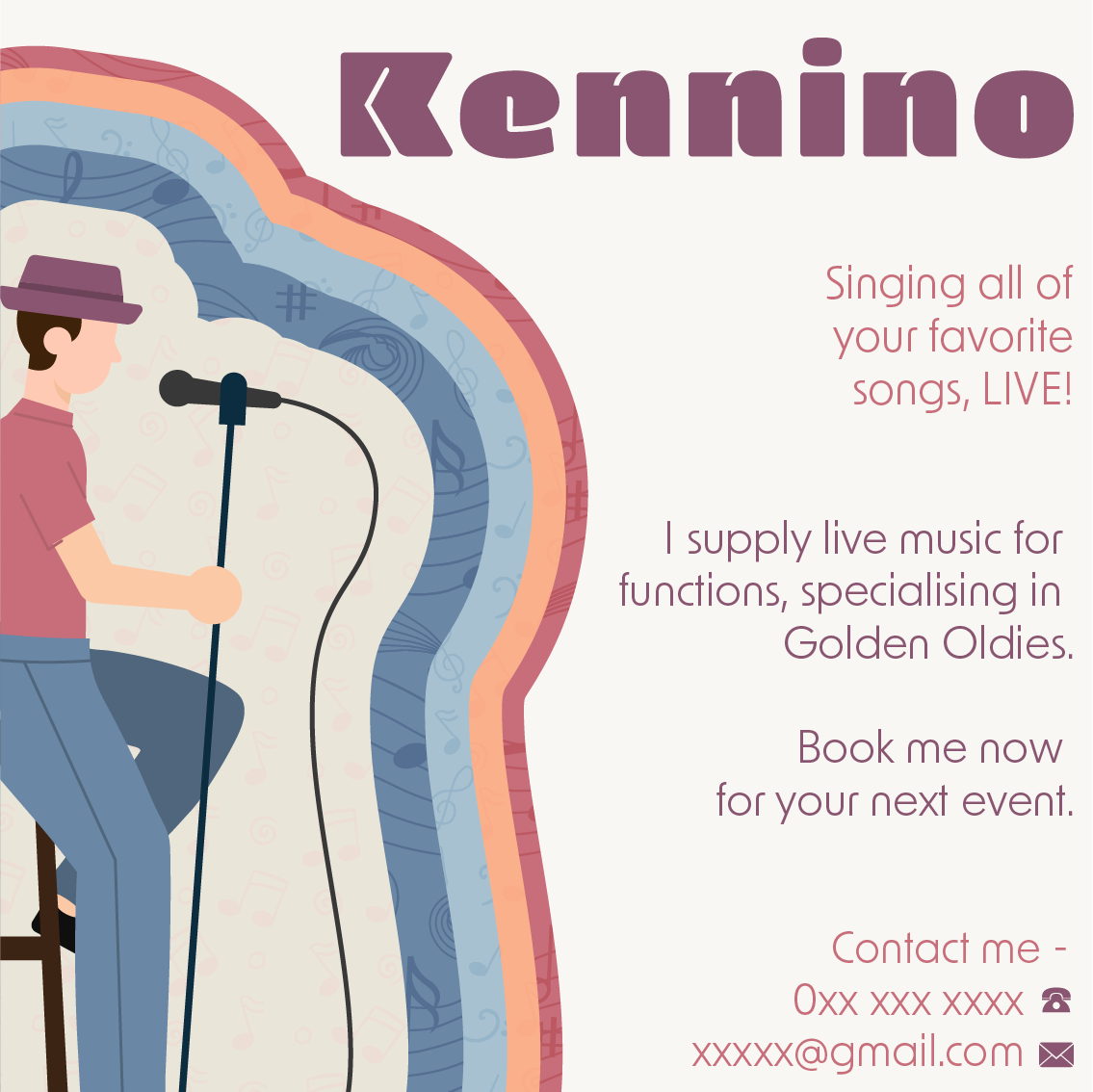 Kennino is a live singer that came to me with the request of designing his business cards as well as a simple and effective Facebook post for him to get his name out there.